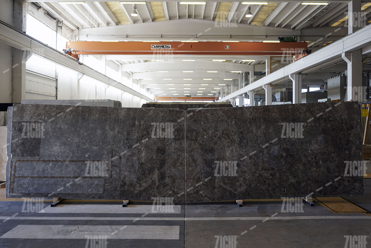 Grigio Billiemi is an Italian marble from Sicily. It is extracted from the quarries in a very limited quantity and is available in modest quantities. It is famous for its deep gray color with dark spots and sometime with little spots with the color of clay. It is a tough marble to process and it always requires to be resined. Ziche Marmi processes all the slabs of Grigio Billiemi at its factory located in Brescia (IT) where the slabs gp through a triple vacuum resining process with epoxy resins. This process has the highest quality and technology, it is the state of the art for marble processing. Grigio BIlliemi a is a marble with a hard and resistant structure, suitable for all internal uses. The most popolar finishing is the polished and it is often combined with other white or beige marbles, such as Botticino.